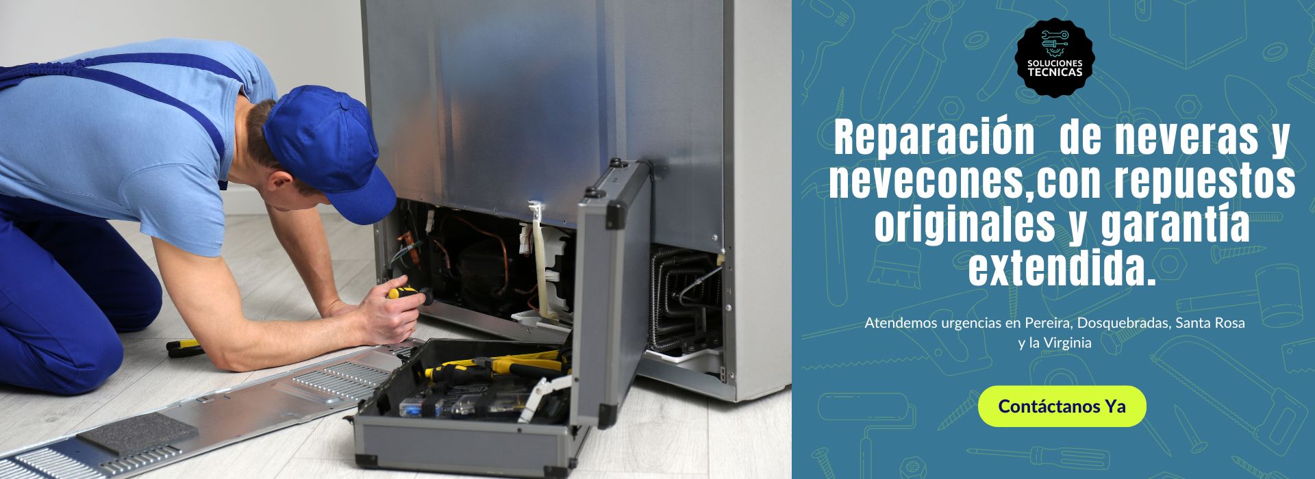 En Soluciones Tecnicas, somos Profesionales en reparación, mantenimiento e instalación de electrodomésticos en Pereira, Dosquebradas, Santa Rosa, La Virginia y Cartago. Contamos con más de 10 años de experiencia brindando soluciones rápidas y efectivas para garantizar el óptimo funcionamiento de tus equipos.